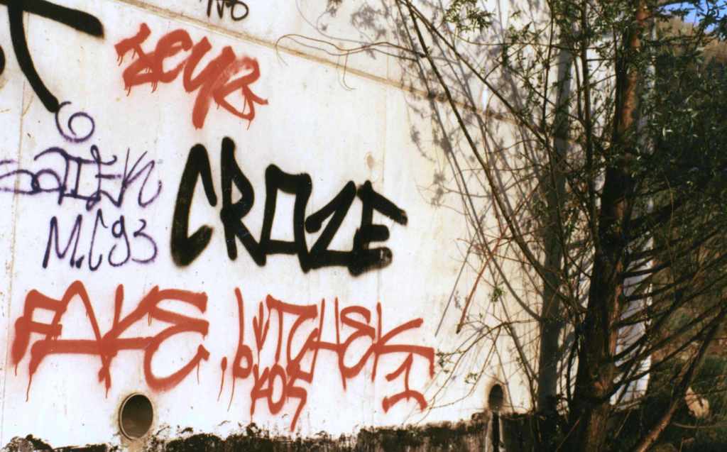 Mi-1985, au début, beaucoup de tags, et ma première peinture à la sortie de la gare d’Athis-Mons. On avait fait nos premiers trucs avec Oncle.D (HSP), c’était horrible, des taches de merde.
