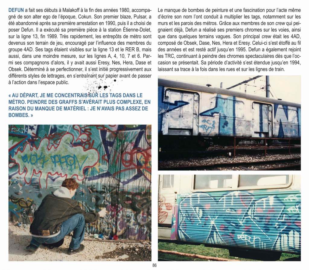 Defun a grandi en banlieue ; il s’est exprimé dans les rues et sur les lignes de métro de la capitale. Banlieusard dans l’âme, il commence à taguer dès 1989 avec Cokun, dans les rues de Malakoff et sur la ligne 13.