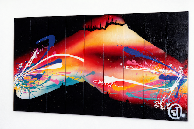 Peinture sur bois de Steph COP exposée à « Paris Graffiti » en 1992.
