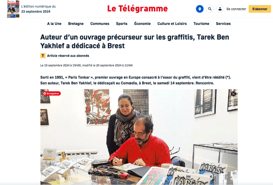 Le 14 septembre dédicace de Tarek à la galerie Le Comoedia à Brest.